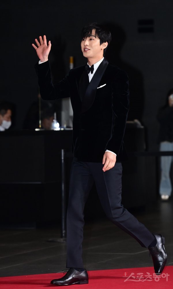 배우 안효섭이 31일 서울 마포구 상암동 SBS프리즘타워에서 열린 ‘2022 SBS 연기대상’ 포토월에 입장하고 있다.