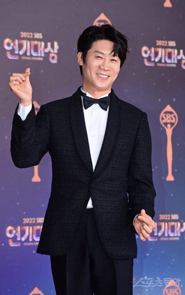 배우 진선규가 31일 서울 마포구 상암동 SBS프리즘타워에서 열린 ‘2022 SBS 연기대상’ 포토월에서 포즈를 취하고 있다.