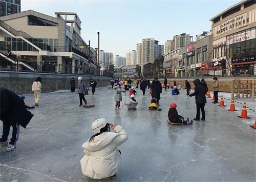 금빛수로 수변무대 주변 200m구간은 얼음썰매장으로 조성돼 있으며 13세 이하 아동을 대상으로 무료로 운영된다.