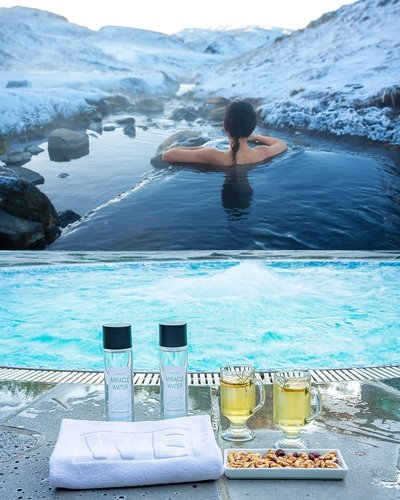 WE호텔은 야외에 수영장, 자쿠지, 건식 사우나를 갖추고 있어 편리하게 노르딕 스타일의 워터 트리트먼트를 즐길 수 있다. 이 시설들에는 몸에 좋은 중탄산 나트륨, 셀레늄, 바나듐, 마그네슘 등 미네랄이 풍부한 천연화산암반수를 활용한다.