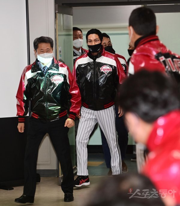 LG 트윈스가 4일 서울 잠실야구장에서 ‘2023년 선수단 신년하례식’을 열렸다. 김인석 대표이사와 염경엽 감독이 입장하고 있다.