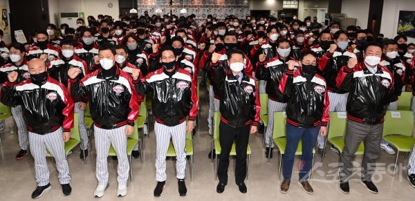 김 대표는 신년사에서 “지난해 끝나지 않은 신종 코로나바이러스 감염증(코로나19) 등 쉽지 않은 여건에서도 클린베이스볼을 준수하며 마지막까지 최선을 다해준 선수들에게 감사드린다”며 “지난해 팀은 상당한 성과를 창출했다. 총 148경기 중 145경기는 참 잘했다. 마지막 3경기에서 다소 부족했고, 수많은 팬들로부터 그 3경기에 대한 아쉬움에 대해 많은 얘기를 들었다. 지금부터 만반의 준비를 해 올해는 모든 분들의 기대에 부응할 수 있도록 하자”고 당부했다.