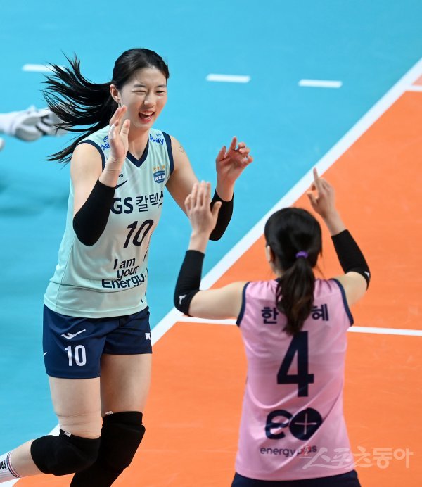 9일 서울 장충체육관에서 열린 ‘2022~2023 도드람 V-리그’ 여자부 GS칼텍스와 KGC인삼공사 경기에서 GS칼텍스 강소휘가 득점에 성공한 후 기뻐하고 있다.