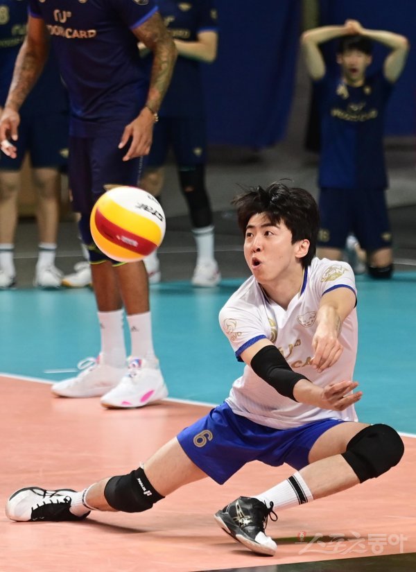 10일 서울 장충체육관에서 열린 ‘2022-2023 도드람 V-리그’ 남자부 서울 우리카드와 수원 한국전력의 경기에서 우리카드 오재성이 리시브를 하고 있다.