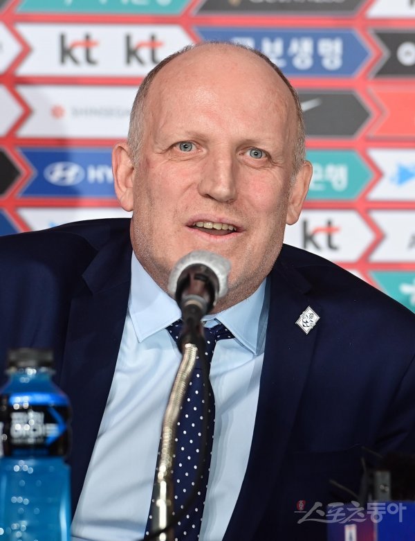 마이클 뮐러 신임 국가대표 전력강화위원장이 11일 서울 종로구 축구회관에서 열린 취임 기자회견에서 인사말을 하고 있다.