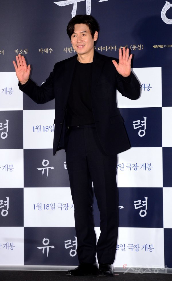 배우 설경구가 11일 서울 용산구 CGV용산아이파크몰에서 열린 영화 ‘유령’ 언론시사회에서 카메라를 향해 포즈를 취하고 있다.