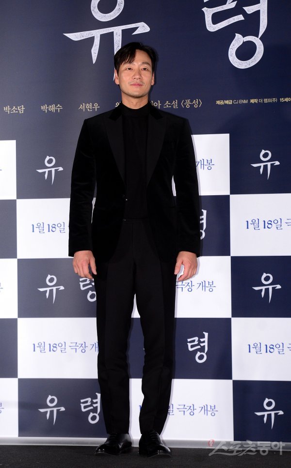 배우 박해수가 11일 서울 용산구 CGV용산아이파크몰에서 열린 영화 ‘유령’ 언론시사회에서 카메라를 향해 포즈를 취하고 있다.