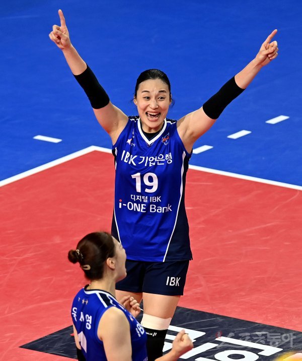 17일 경기도 화성실내체육관에서 ‘2022-2023 도드람 V리그’ 화성 IBK기업은행과 김천 한국도로공사의 여자부 경기가 열렸다. IBK기업은행 표승주가 득점을 올린 후 환호하고 있다.