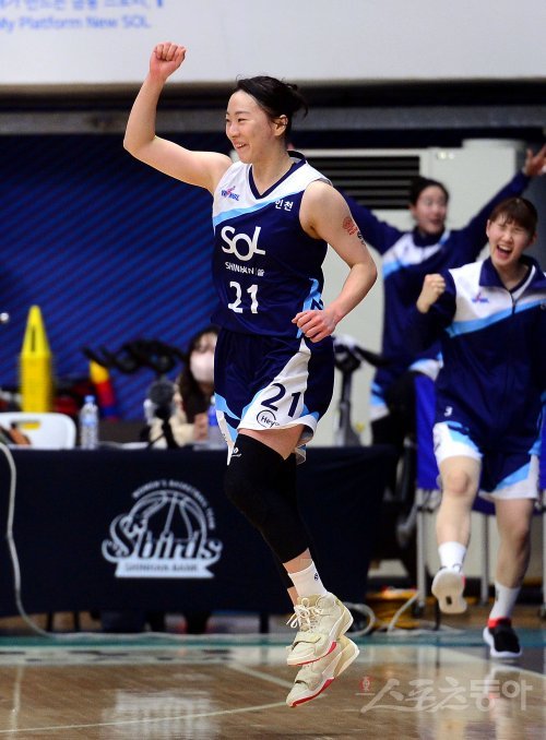 김진영은 숭의여고 시절 한 경기 62점을 올리는 등 뛰어난 공격력으로 주목받았지만, 프로 첫 소속팀인 청주 KB스타즈에선 크게 두각을 드러내진 못했다. 2017~2018시즌의 평균 12분16초가 최다 출전시간이었다. 2019~2020시즌을 앞두고 BNK로 이적한 게 ‘신의 한 수’였다. BNK 시절 꾸준히 20분 이상을 소화하며 평균 득점을 8.73점(2021~2022시즌)까지 올렸고, 이번 시즌 신한은행에서 잠재력을 터트리고 있다.