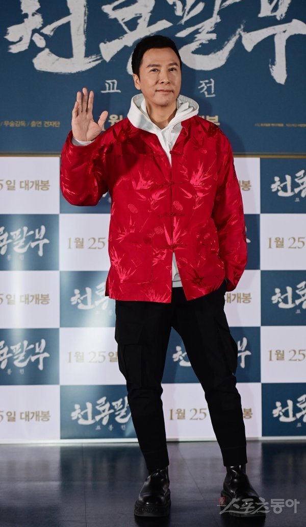 감독 겸 배우 견자단이 19일 서울 광진구 자양동 롯데시네마 건대입구점에서 열린 영화 ‘천룡팔부: 교봉전’ 언론시사회 및 내한 기자간담회에서 포즈를 취하고 있다.