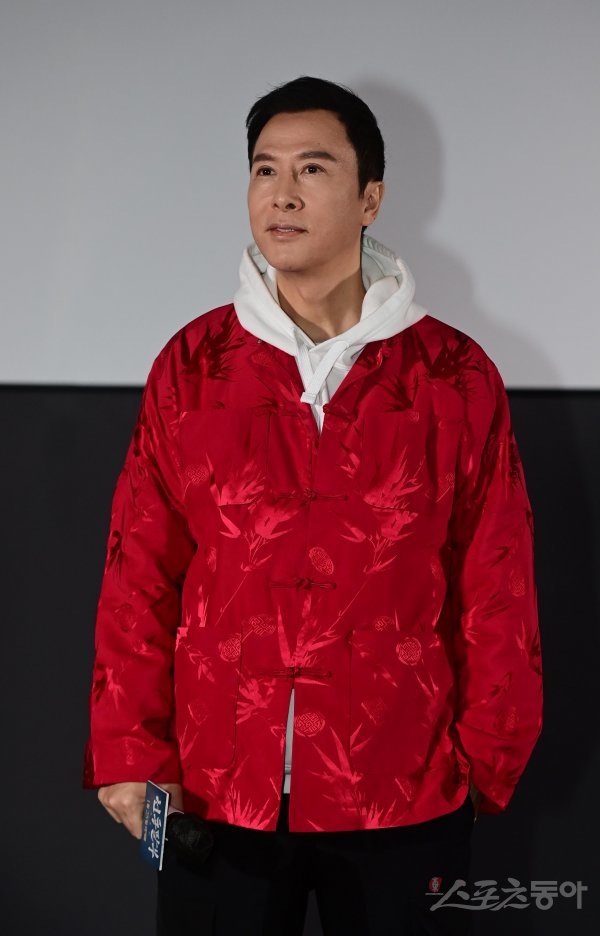 감독 겸 배우 견자단이 19일 서울 광진구 자양동 롯데시네마 건대입구점에서 열린 영화 ‘천룡팔부: 교봉전’ 언론시사회에 앞서 무대 인사를 하고 있다.