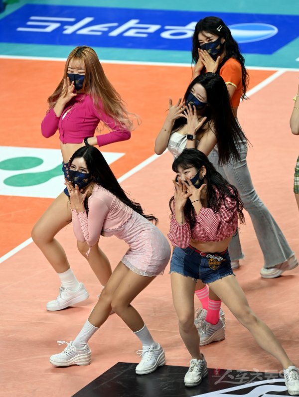 19일 서울 중구 장충체육관에서 ‘2022-2023 도드람 V리그’ 서울 우리카드와 천안 현대캐피탈의 남자부 경기가 열렸다. 우리카드 치어리더가 화려한 공연을 펼치고 있다.