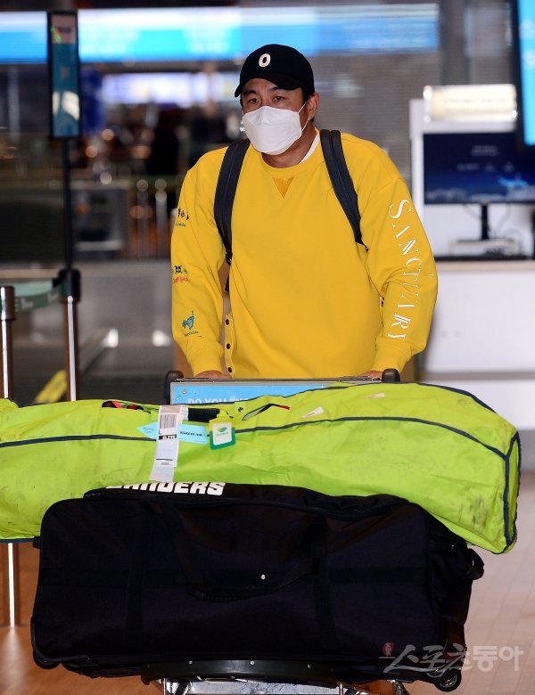 프로야구 SSG 랜더스의 스프링캠프 선발대가 25일 인천국제공항을 통해 미국 플로리다로 출국했다. SSG 김강민이 출국장으로 향하고 있다.