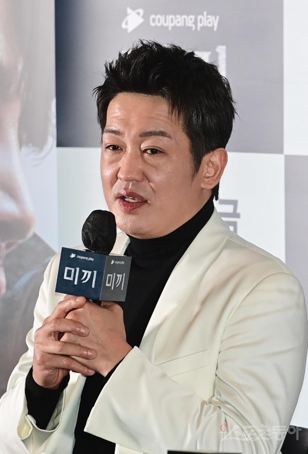 배우 허성태가 25일 서울 강남구 삼성동 메가박스 코엑스점에서 열린 쿠팡플레이 ‘미끼’ 언론시사회에서 인사말을 하고 있다.