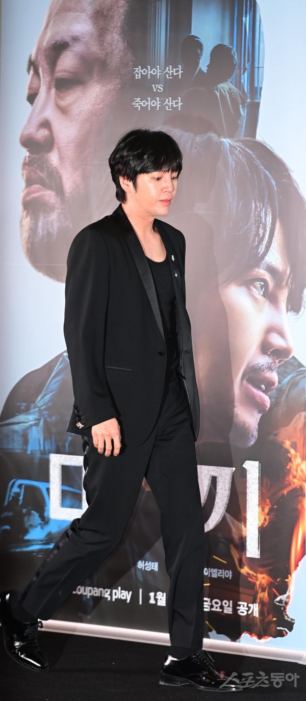 배우 장근석이 25일 서울 강남구 삼성동 메가박스 코엑스점에서 열린 쿠팡플레이 ‘미끼’ 언론시사회 무대에 오르고 있다.