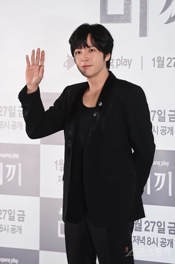 배우 장근석이 25일 서울 강남구 삼성동 메가박스 코엑스점에서 열린 쿠팡플레이 ‘미끼’ 언론시사회에서 포즈를 취하고 있다.