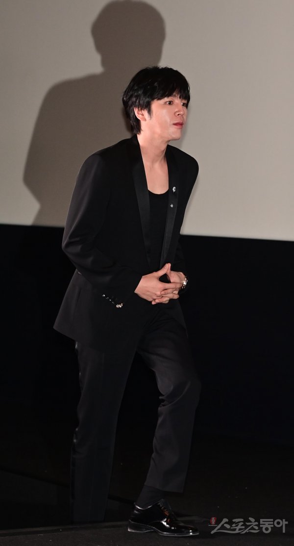 배우 장근석이 25일 서울 강남구 삼성동 메가박스 코엑스점에서 열린 쿠팡플레이 ‘미끼’ 언론시사회 무대에 오르고 있다.