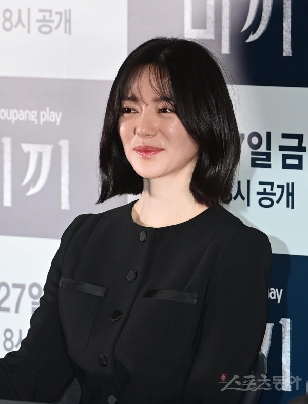 배우 이엘리야가 25일 서울 강남구 삼성동 메가박스 코엑스점에서 열린 쿠팡플레이 ‘미끼’ 언론시사회에서 인사말을 하고 있다.