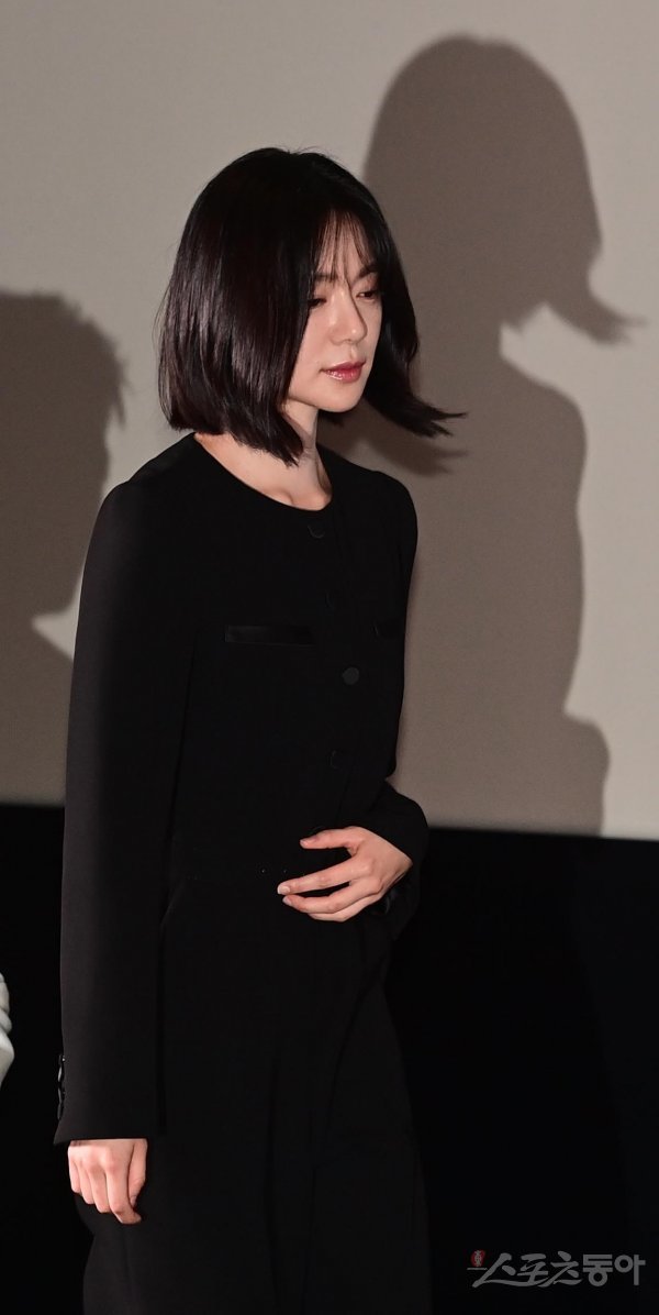 배우 이엘리야가 25일 서울 강남구 삼성동 메가박스 코엑스점에서 열린 쿠팡플레이 ‘미끼’ 언론시사회 무대에 오르고 있다.