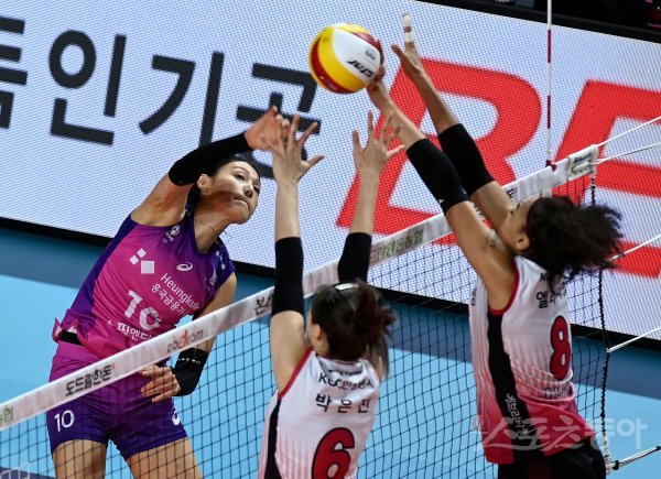 25일 인천 삼산월드체육관에서 ‘2022-2023 도드람 V리그’ 인천 흥국생명과 대전 KGC인삼공사의 여자부 경기가 열렸다. 흥국생명 김연경이 KGC인삼공사 블로커를 피해 스파이크를 날리고 있다.