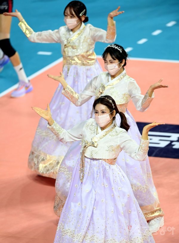 25일 인천 삼산월드체육관에서 ‘2022-2023 도드람 V리그’ 인천 흥국생명과 대전 KGC인삼공사의 여자부 경기가 열렸다. 흥국생명 치어리더가 화려한 공연을 펼치고 있다.
