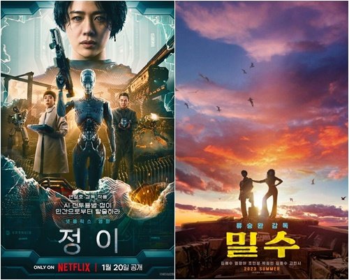 20일 공개한 김현주 주연의 SF ‘정이’가 선두에 섰다. 김현주는 2194년 기후변화로 폐허가 된 지구를 벗어나 우주에 세워진 쉘터를 배경으로 한 영화에서 내전의 위기를 끝낼 전설적인 용병 정이를 연기한다. 지난해 5월 세상을 떠난 고 강수연이 정이의 뇌를 복제해 전투 인공지능(AI)을 개발하려는 연구소 팀장 역을 맡았다. ‘부산행’, ‘지옥’ 등 글로벌한 인기를 끌었던 연상호 감독이 연출해 일찌감치 관심을 모으며 공개 3일 만에 1930만 시청 시간을 기록, 넷플릭스 글로벌 톱10 영화(비영어) 부문에서 1위를 차지했다.