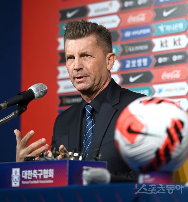 콜린 벨 여자 축구대표팀 감독이 26일 서울 종로구 축구회관에서 열린 신년 기자회견에서 취재진의 질문에 대답하고 있다.
