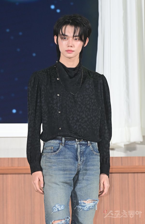 그룹 투모로우바이투게더 연준이 26일 서울 강남구 삼성동 코엑스 오디토리움에서 열린 미니앨범 5집 ‘이름의 장: TEMPTATION’ 발매 기념 프레스 쇼케이스에서 포즈를 취하고 있다.