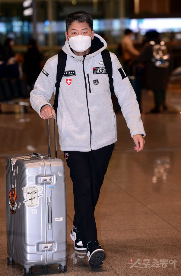 프로야구 SSG 랜더스가 30일 인천국제공항을 통해 스프링캠프 훈련지인 미국 플로리다로 출국했다. SSG 김원형 감독이 출국장으로 향하고 있다.