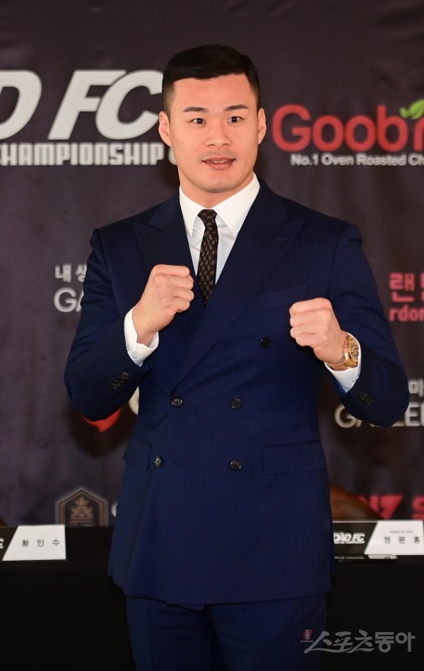 황인수가 30일 서울 용산구 갤러리K서울타워점에서 열린 ‘황인수 vs 명현만 vs 권아솔’ 기자회견에서 포즈를 취하고 있다.
