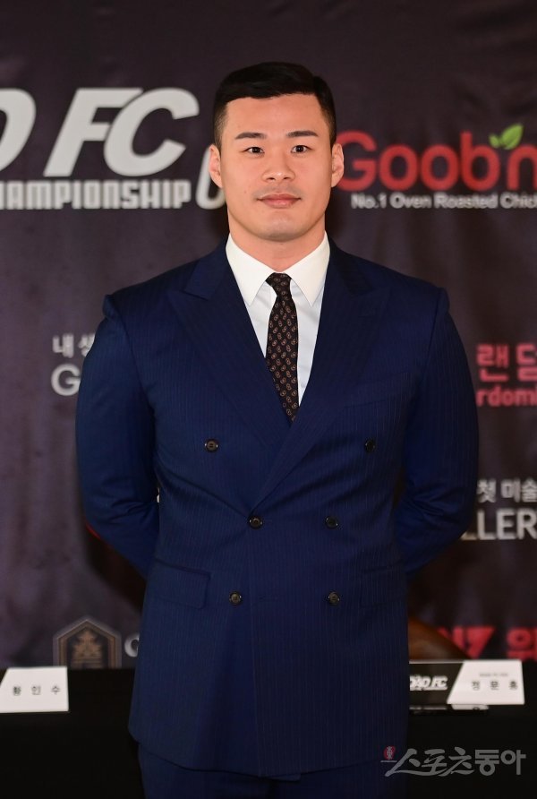 황인수가 30일 서울 용산구 갤러리K서울타워점에서 열린 ‘황인수 vs 명현만 vs 권아솔’ 기자회견에서 포즈를 취하고 있다.