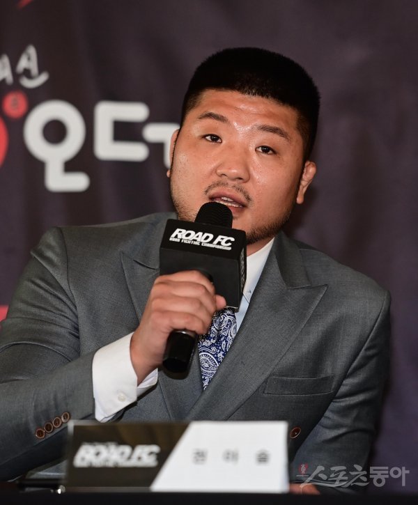 권아솔이 30일 서울 용산구 갤러리K서울타워점에서 열린 ‘황인수 vs 명현만 vs 권아솔’ 기자회견에서 방송 출연 소감을 말하고 있다.
