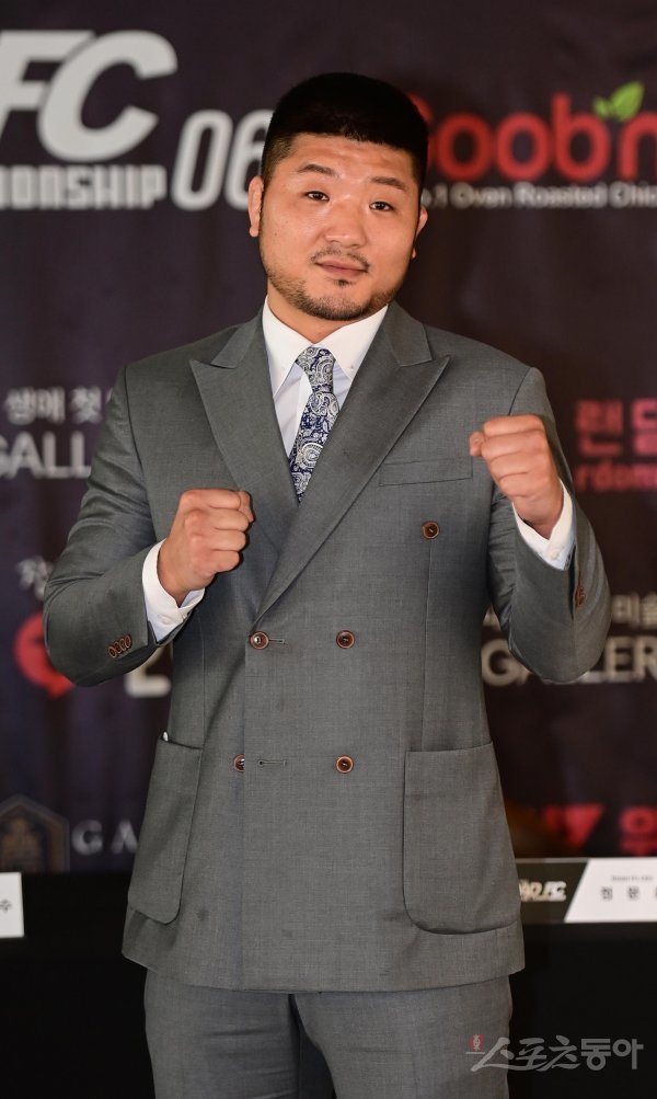 권아솔이 30일 서울 용산구 갤러리K서울타워점에서 열린 ‘황인수 vs 명현만 vs 권아솔’ 기자회견에서 포즈를 취하고 있다.