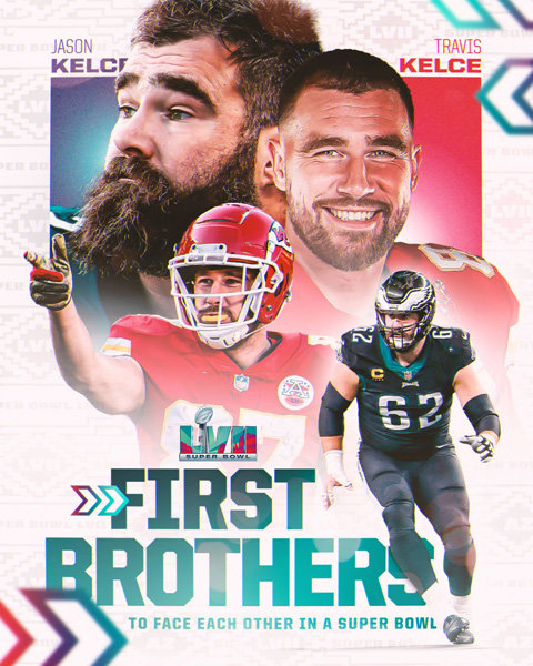 필라델피아 이글스(NFC)와 캔자스시티 치프스(AFC)가 제57회 슈퍼볼에서 빈스 롬바르디 트로피(슈퍼볼 우승컵)를 두고 격돌하는 가운데, 켈시 형제의 맞대결이 관심거리로 떠올랐다.