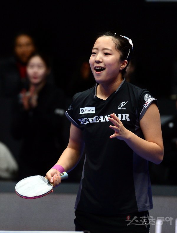 5일 경기도 수원시 경기대 광교체육관 탁구전용경기장(스튜디오T)에서 열린 ‘ 2023 두나무 KTTL 여자 코리아리그’ 대한항공과 포스코인터내셔널의 경기에서 대한항공 신유빈이 실수를 한 후 아쉬워하고 있다.