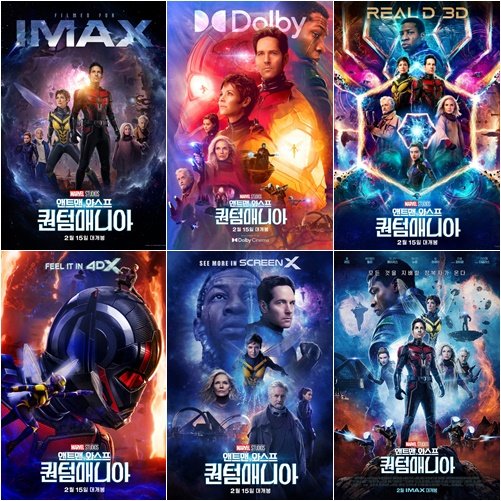 영화 ‘앤트맨과 와스프: 퀀텀매니아’가 아이맥스(IMAX)부터 돌비 시네마, 3D, 4DX, 슈퍼4D(Super 4D), 스크린X(ScreenX)까지 다양한 포맷 개봉을 앞두고 포맷별 포스터 5종을 공개하고 포맷별 관람포인트를 공개했다. 영화는 미지의 세계 ‘양자 영역’에 빠져버린 ‘앤트맨 패밀리’가 MCU 사상 가장 강력한 빌런이자 무한한 우주를 다스리는 정복자 ‘캉’을 마주하며 시공간을 초월한 최악의 위협에 맞서는 내용을 그린 올해 첫 마블 영화다.