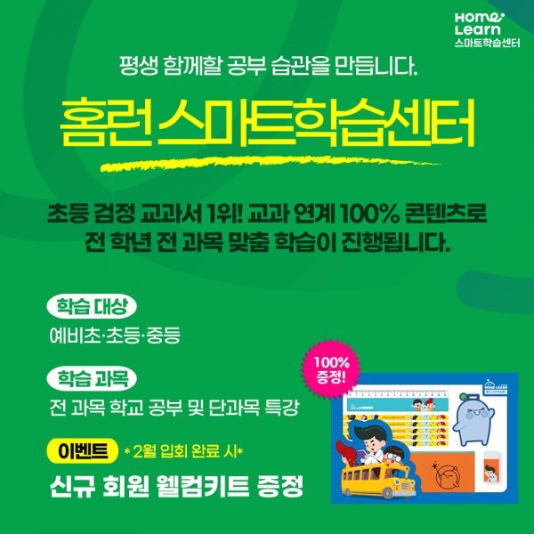 에듀테크 기업 아이스크림에듀는 ‘홈런 스마트학습센터’의 신규 등록회원을 대상으로 웰컴키트 증정 이벤트를 진행한다.