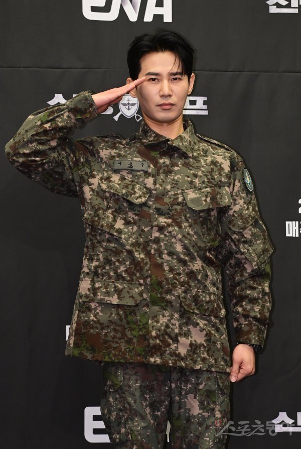 배우 이충구가 6일 서울 마포구 상암동 스탠포드호텔 서울에서 열린 ENA 새 예능프로그램 ‘신병캠프’ 제작발표회에서 포즈를 취하고 있다.
