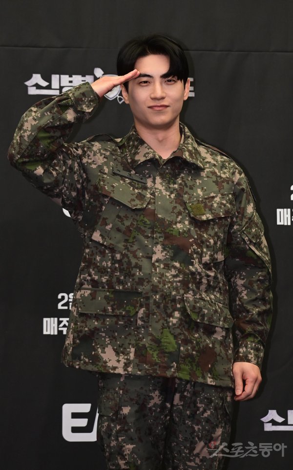 배우 차영남이 6일 서울 마포구 상암동 스탠포드호텔 서울에서 열린 ENA 새 예능프로그램 ‘신병캠프’ 제작발표회에서 포즈를 취하고 있다.