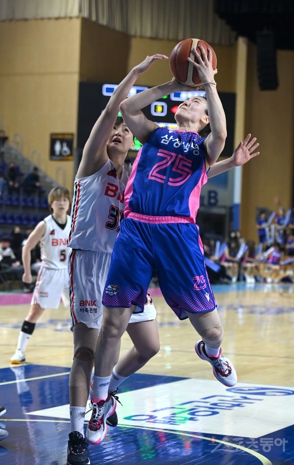 8일 용인실내체육관에서 열린 ‘신한은행 SOL 2022~2023 여자프로농구’ 삼성생명과 BNK 썸 경기에서 삼성생명 배혜윤이 BNK 썸의 수비를 뚫고 골밑 슛을 하고 있다.