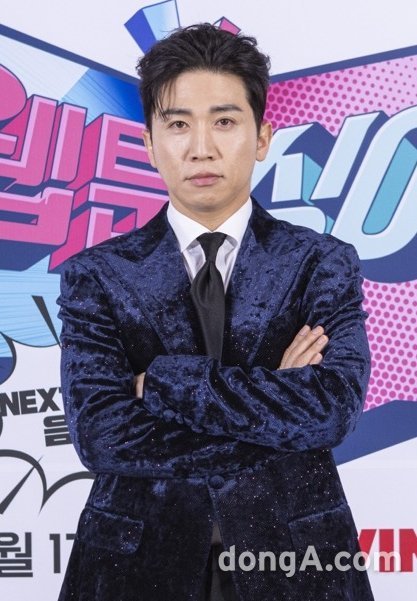 개그맨 유세윤이 14일 오후 진행된 티빙 오리지널 ‘웹툰싱어’ 제작발표회에서 포토타임에 임하고 있다.