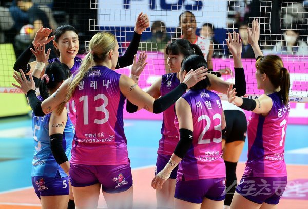 15일 인천 삼산월드체육관에서 ‘2022-2023 도드람 V리그’ 인천 흥국생명과 광주 페퍼저축은행의 여자부 경기가 열렸다. 흥국생명이 페퍼저축은행을 상대로 세크스코어 3-0으로 승리한 후 선수들이 코트에서 기쁨을 나누고 있다.
