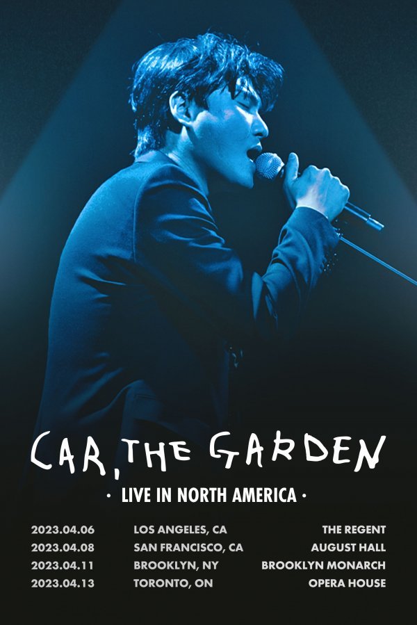 카더가든의 북미 투어 ‘Car, the garden Live in North America’는 4월 6일 로스앤젤레스(Los Angeles)를 시작으로 8일 샌프란시스코(San Francisco), 11일 브루클린(Brooklyn), 13일 토론토(Toronto)까지 총 4개 도시에서 진행된다.
