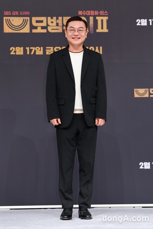 배우 김의성이 17일 오후 2시 서울 양천구 목동 SBS 사옥에서 진행된 SBS 새 금토 드라마 ‘모범택시2’ 제작발표회에서 포즈를 취하고 있다.