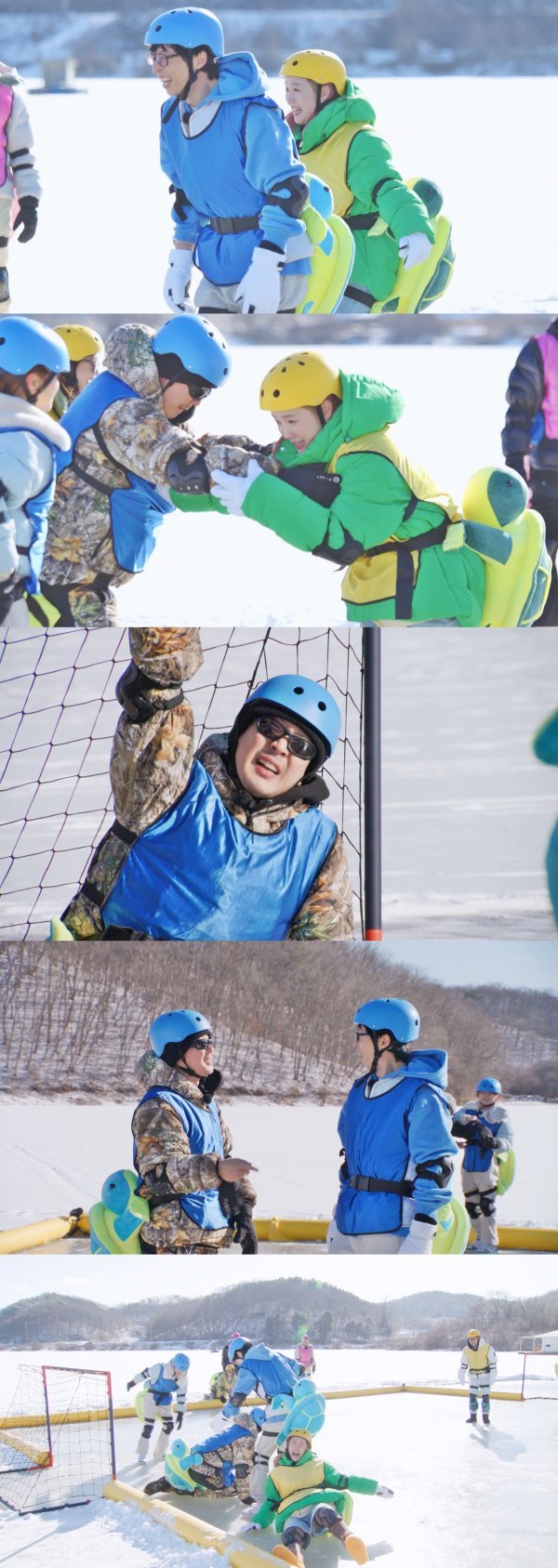 이날은 미끄러운 빙판 위에서 축구를 진행했는데 한껏 과열된 분위기 속에서 별과 유재석, 하하는 치열한 몸싸움을 벌였다. 승부욕을 불태우는 별의 모습에 하하는 일과 사랑의 사이에서 고뇌에 빠진 것도 잠시, 결국 버럭 소리를 질러 애꿎은 유재석만 진땀을 흘리는가 하면, “화난 거 아니죠?”라며 걱정하기도 했다. 지켜보던 멤버들 역시 “부부가 서로 안 봐준다”라며 혀를 내둘러 궁금증을 자아낸다.