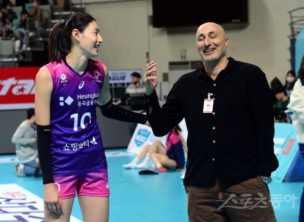 19일 서울 장충체육관에서 ‘2022-2023 도드람 V리그’ 서울 GS칼텍스와 인천 흥국생명의 여자부 경기가 열렸다. 흥국생명이 GS칼텍스를 상대로 세트스코어 3-1로 승리한 후 김연경과 아본단자 감독이 이야기를 나누고 있다.