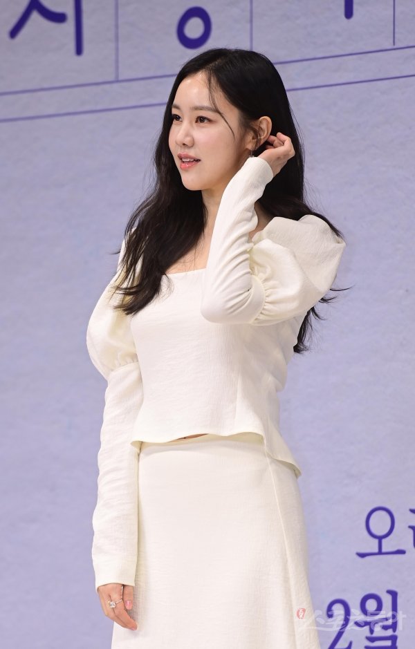 배우 김예원이 21일 서울 종로구 JW메리어트동대문스퀘어서울에서 열린 디즈니플러스 ‘사랑이라 말해요’ 제작발표회에서 포즈를 취하고 있다.