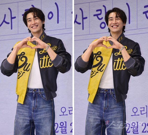 배우 김영광이 21일 서울 종로구 JW메리어트동대문스퀘어서울에서 열린 디즈니플러스 ‘사랑이라 말해요’ 제작발표회에서 포즈를 취하고 있다.