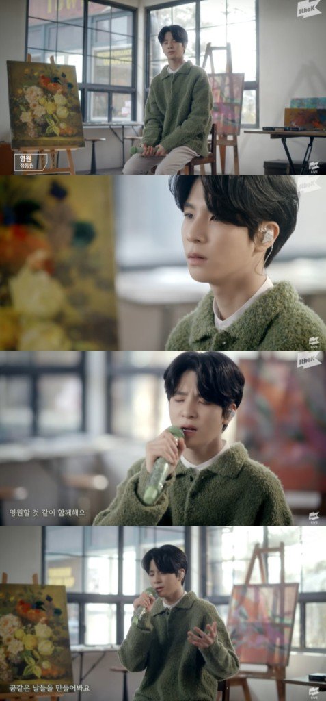 영상에서 정동원은 차분한 모습으로 라이브를 선보였다. 스탠다드 발라드 장르의 ‘영원\'을 완벽히 소화, 한층 성숙된 가창력과 진중한 모습을 보여줬다.