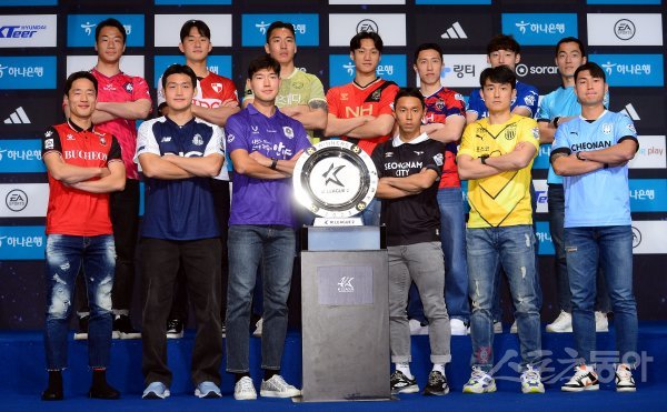 21일 서울 양재동 더케이호텔 서울에서 열린 ‘하나원큐 K리그2 2023 개막 미디어데이’에 참석한 뒷열 시계방향부터 류원우, 이한도, 이상욱, 우주성, 이영재, 박세직, 김영남, 김주헌, 이후권, 심동운, 백동규, 한용수, 김호남이 기념촬영을 하고 있다.